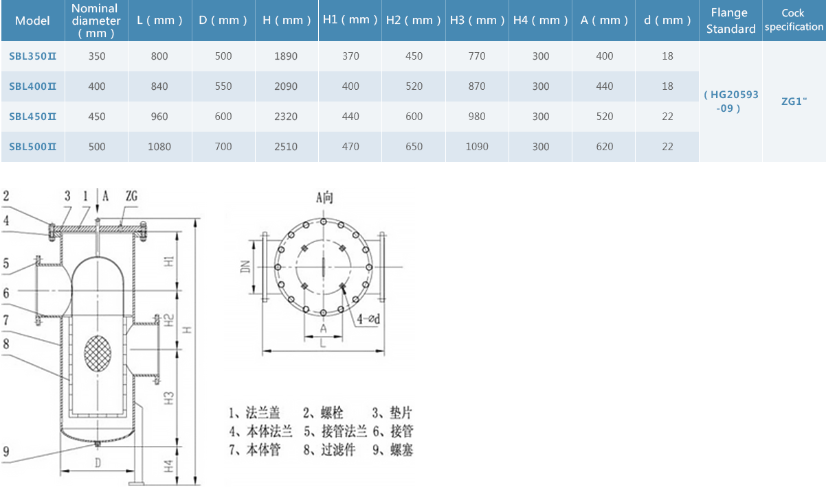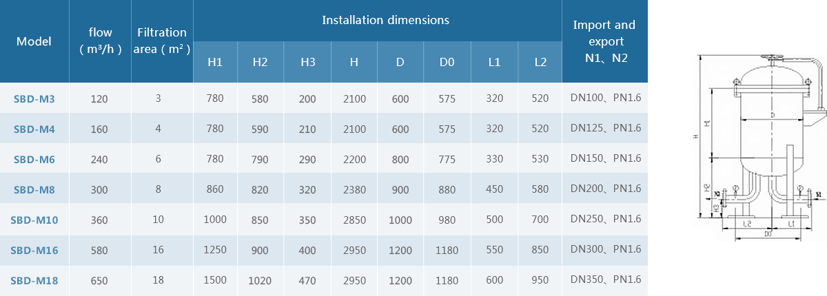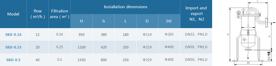 The SBD series bag filter is mainly composed of a filter bag, a filter frame and a casing. It is a simple, efficient and economical filter system. When the material enters the filter bag from above, the impurities are trapped in the bag to obtain a clean fluid. Because of its convenient operation, low cost, large processing capacity and high filtration precision, it is widely used in the filtration of petrochemical products, paints, food, beverages, sewage and so on. The SBD series of bag filters are suitable for filtration of any fine particles (<1000ppm) with an accuracy ranging from 1 to 1000μm and for liquid filtration from 1 to 1000m3/h.