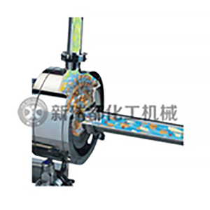 高速運動的轉子和精密配合定子,產生離心作用,液態從下部或上部吸入定子腔。受擠壓液態產生劇烈噴射,承受強烈機械剪切,液壓剪切,形成循環剪切,從而使物料混合、分散、細化、溶解、均質、乳化。