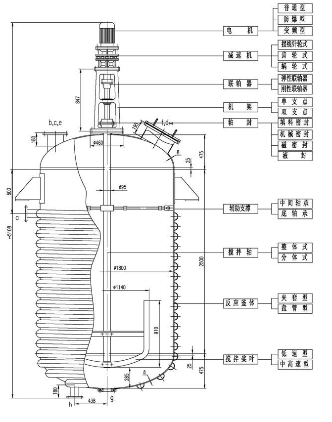 攪拌容器配套: 0.05M3,100M3容器,壓力、真空、冷卻、夾套、內盤管、外盤管均可制造;