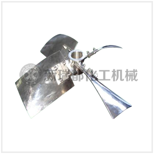 此攪拌器槳葉可成24°、45°或60°傾角,有軸向分流,徑向分流,流型比平直葉槳式復雜,排出能量比平直槳高,綜合效果更好,適用過程相同,因此應用頻率比平直葉槳式高,運行條件同平直葉槳式。