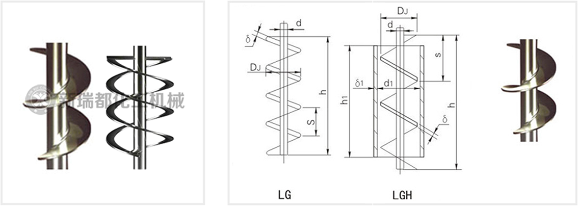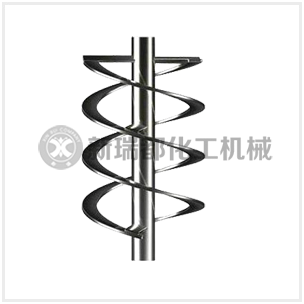 螺桿式攪拌器是軸向流攪拌器,適用于高粘度流體,在層流狀態下操作。可以與導流筒配合操作,使導流筒內外的流體呈不同方向的循環流動,加強混合效果。